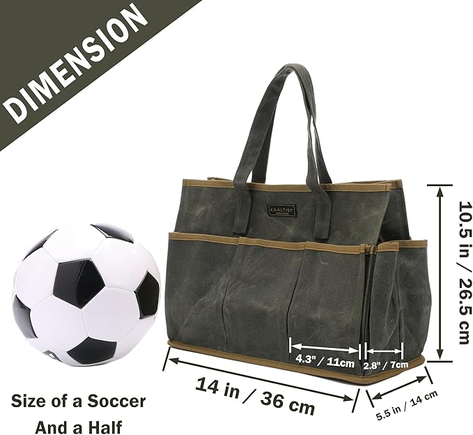 Tool Tote Bag, Heavy Duty 16oz Waxed Canvas Garden Tool Bag | Portable 11-Pocket Tool Storage Bag for Gardener Electrician Contractor Repairman (14"L x 5.5"W x 10.5"H) – Army Green