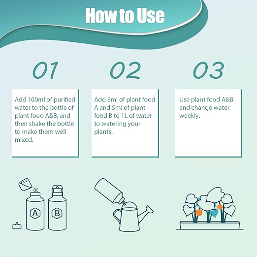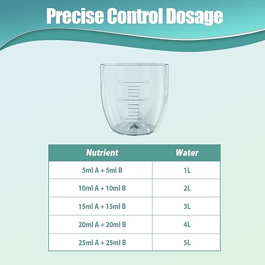 • 【Easy to Use】Just need to mix each nutrient with 100ml water in the correct proportions. And when adding fertilizer, we are equipped with a dispensing cup for convenient metering. Add 5ml A and 5ml B with each 1L water into your hydroponics system