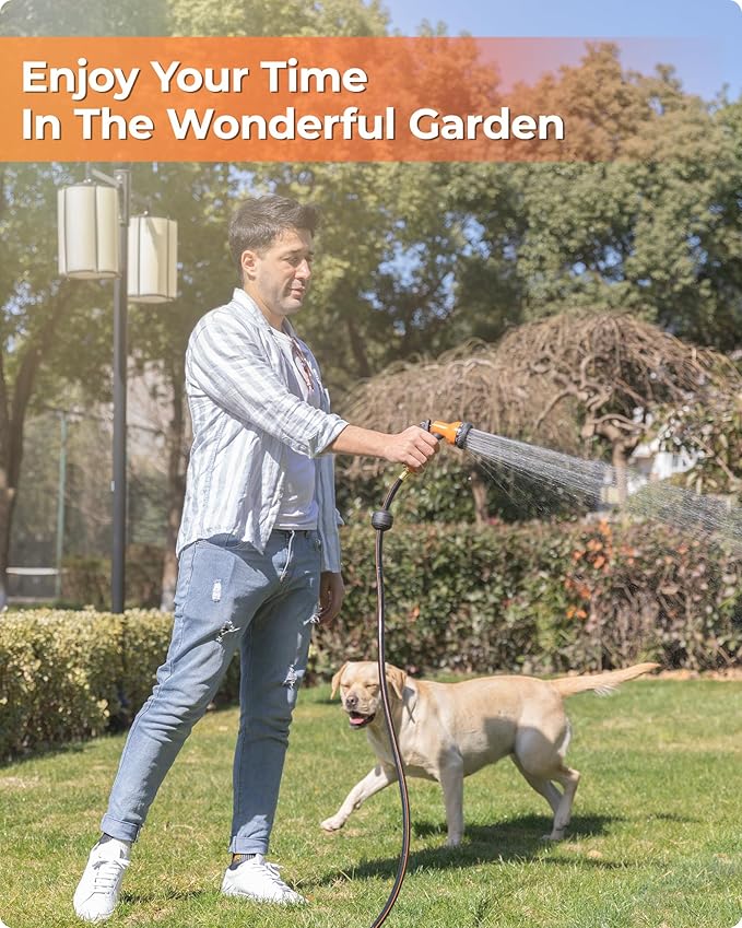 • 9-Spray Versatile Nozzle:From mist to jet, choose among 9 spray patterns for gardens, cars, patios, or cleaning. Ergonomic non-slip grip ensures comfortable handling.