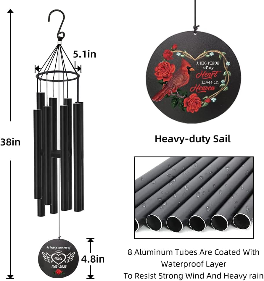 Personalized 36" Memorial Wind Chimes for Outside, Sympathy and Bereavement Gift for Loss of Loved One, A Thoughtful Remembrance of Mother, Father or Husband for Garden and Patio