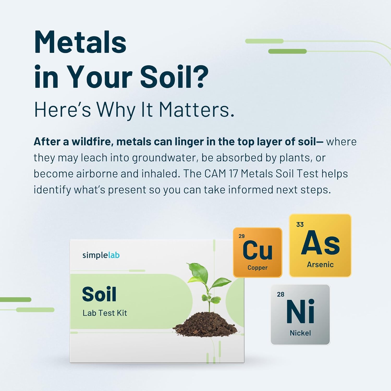 Heavy Metals in Soil Test by SimpleLab | Includes 9 compounds, Including Lead, Arsenic, and Copper, and Analysis by a Certified Laboratory | at Home Soil Lab Test | Collect Sample at Home
