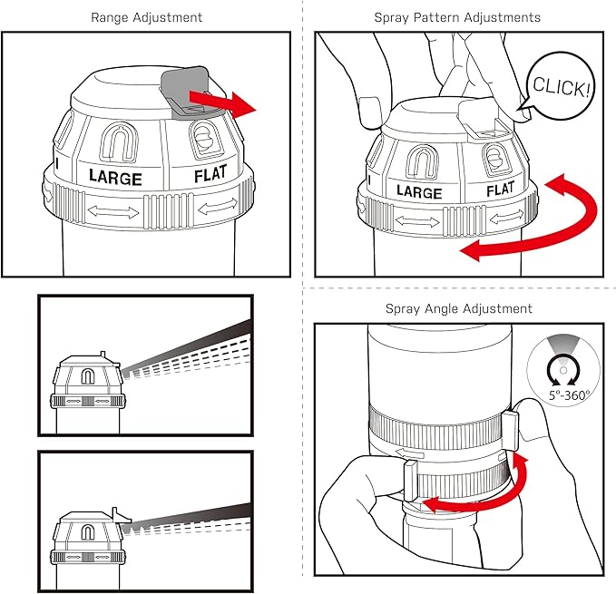 • Upper tab range adjustment controls the spray distance for better watering precision