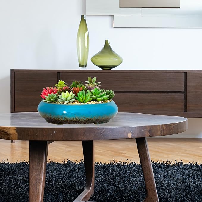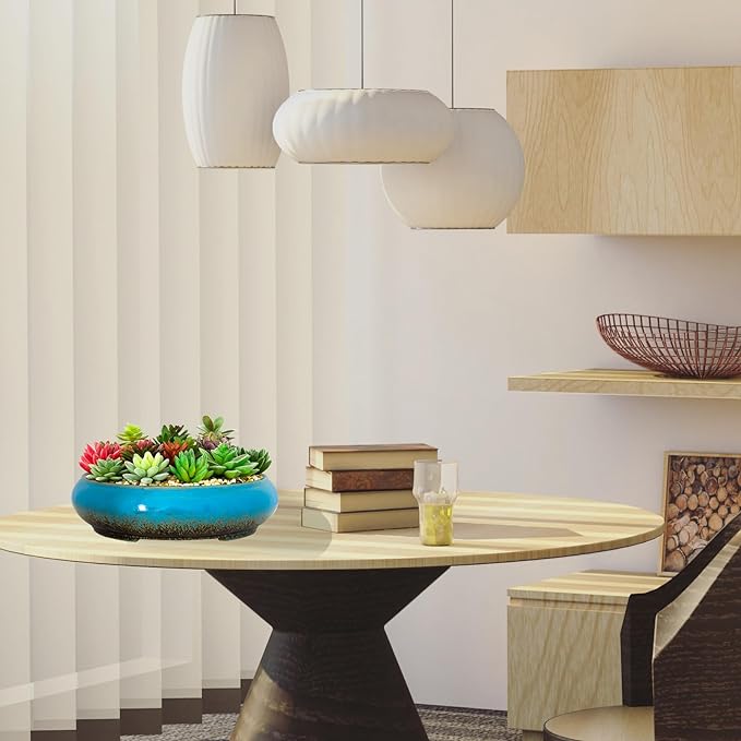 • Stylish Design: Round shape and blue glaze add a modern, artistic touch to any space.