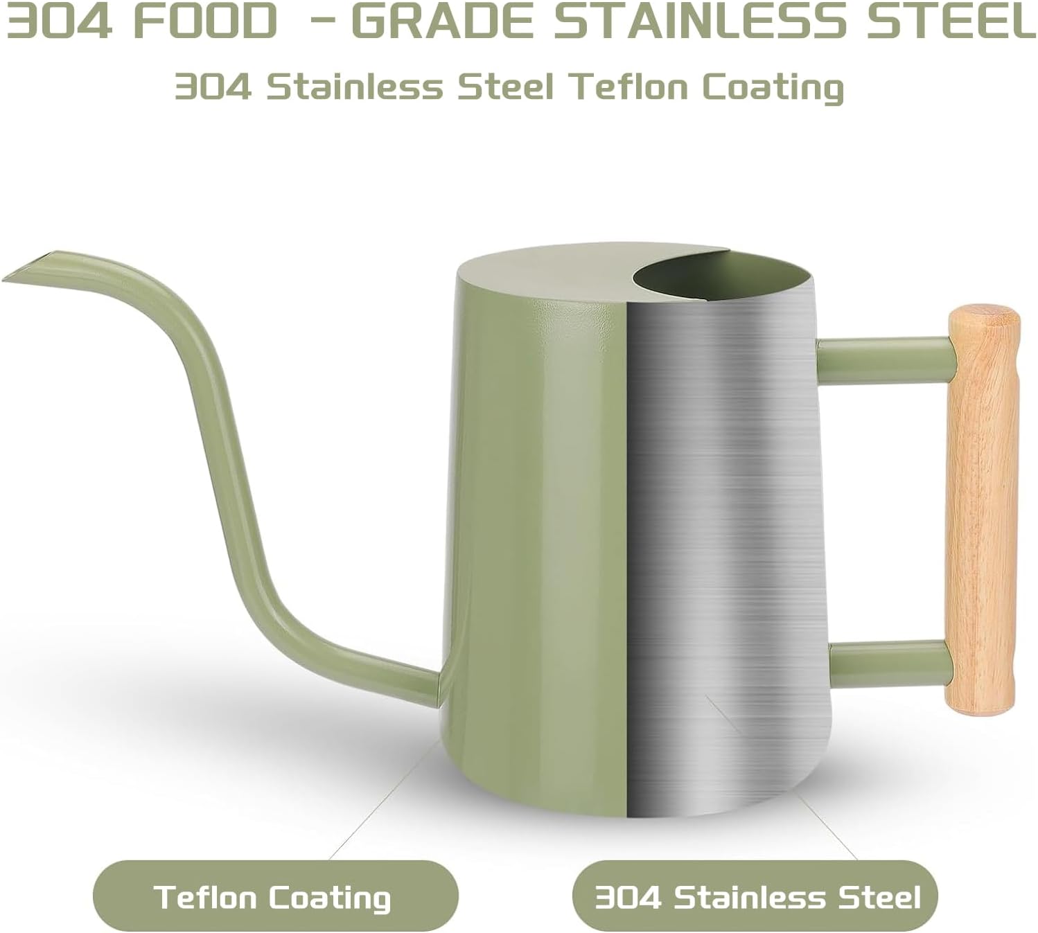 • DECORATIVE AND FUNCTIONAL- No need to hide this decorative watering can after use. The modern, minimalist design fits into any decor and looks great on display. Featuring a sleek matte olive green spray can body and solid wood handle, this spray can also doubles as a decoration!