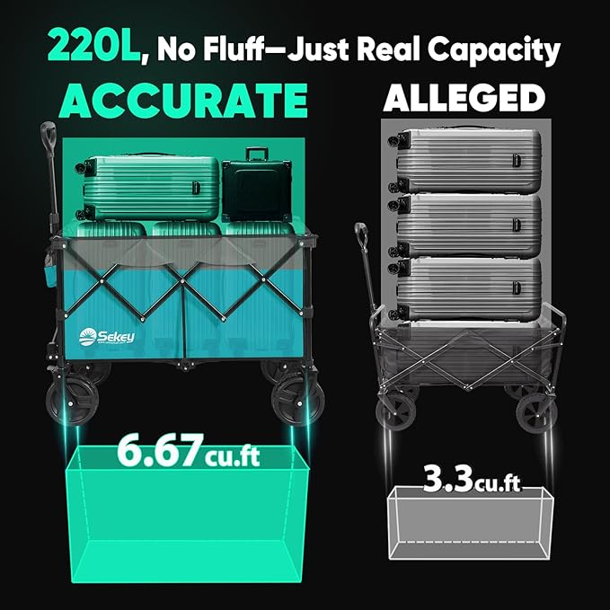 • 【𝐆𝐨 𝐀𝐧𝐲𝐰𝐡𝐞𝐫𝐞 𝐖𝐡𝐞𝐞𝐥𝐬】: Featuring 𝟖" 𝐝𝐢𝐚𝐦𝐞𝐭𝐞𝐫 𝐰𝐡𝐞𝐞𝐥𝐬 𝐚𝐧𝐝 𝟑" 𝐰𝐢𝐝𝐞 𝐭𝐫𝐞𝐚𝐝𝐬, Sekey wagon glides effortlessly over sand and rough terrain. The 𝐚𝐧𝐭𝐢-𝐬𝐥𝐢𝐩 𝐫𝐮𝐛𝐛𝐞𝐫 strip enhances traction and reduces vibrations, while the 𝐛𝐮𝐢𝐥𝐭-𝐢𝐧 𝐛𝐫𝐚𝐤𝐞𝐬 provide reliable stopping power wherever you go.
