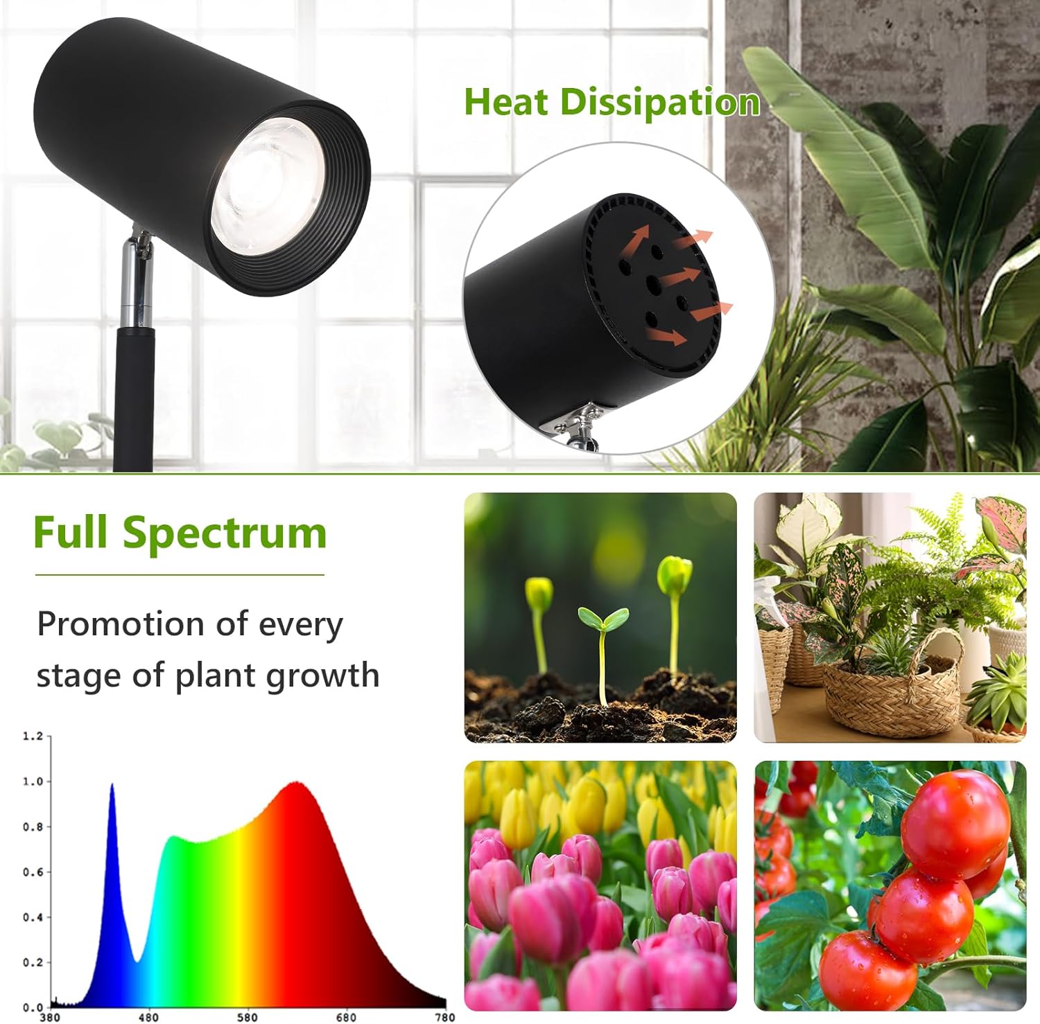 • [Upgrade 40W COB Aerospace Aluminum Bulb]: the indoor plant lights is made of aerospace aluminum, which improves the heat dissipation efficiency and is more sturdy than ordinary plant bulbs. the COB light source design comes from the LED light optimization upgrade, which can save more power spending under the same conditions. At the same time 40W 4000K plant stand with grow light CRI up to 98 +, can make look plants more vivid and beautiful.