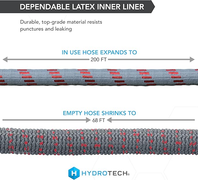 HydroTech 5/8" 200 ft Expandable Garden Hose - Flexible, Lightweight, Durable and Burst-Proof Hose with Reinforced Latex Core and Solid Brass Fittings - Great for Lawn Care, Garden, and Car Washing