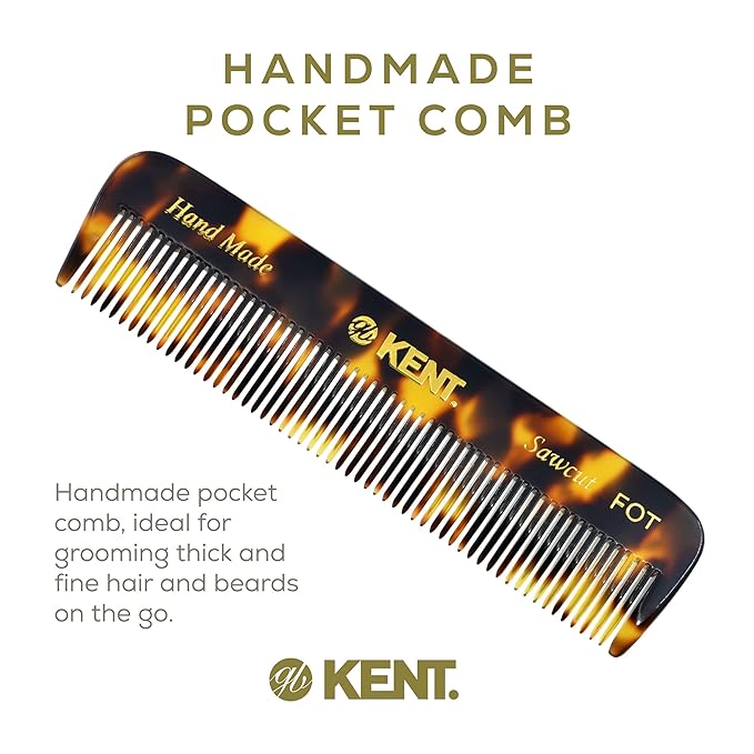 Kent FOT TY Fine Tooth Comb for Men - Handmade Pocket Comb for Travel, Styling, Fine or Thinning Hair, Mustache and Beard Care Handpolished Saw-Cut Made in England