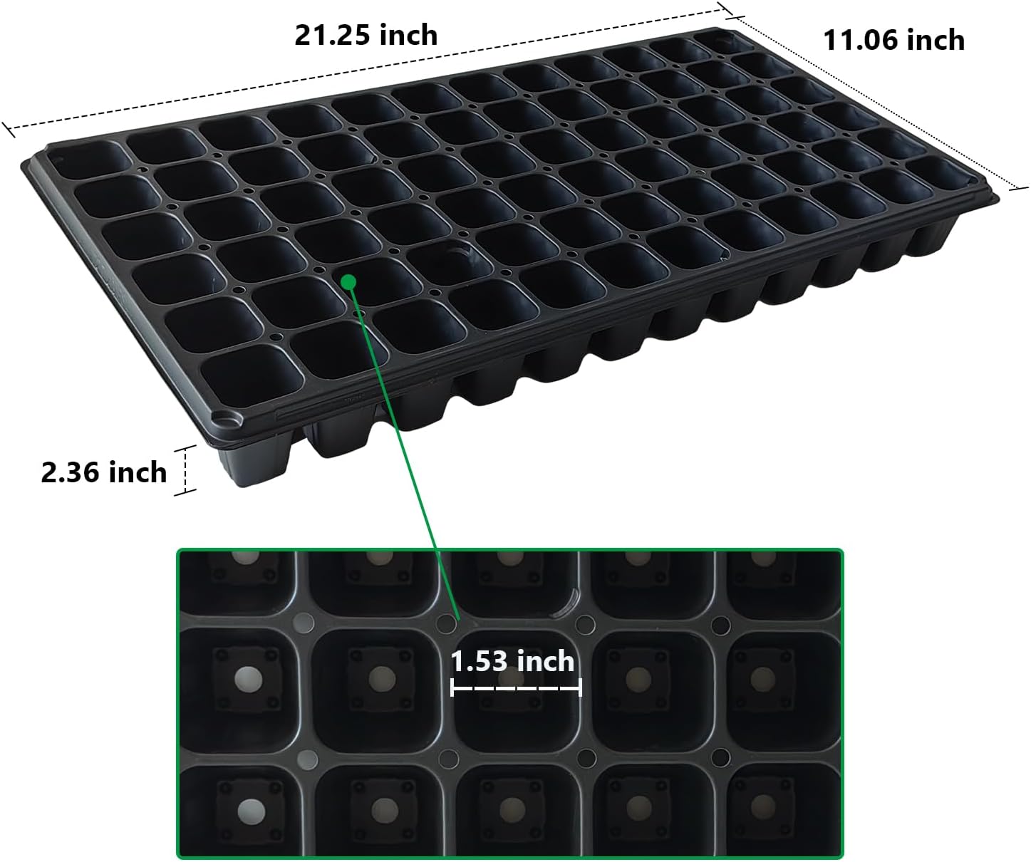 • Dimension: 21.25"×11", 2.36" Height, Seedling Starter Trays great with Planting Seed Starter Kit. 72 cell nursery tray, height of trays is 2.36 inches which just fits standard 1020 tray which height is 2.5 inches.