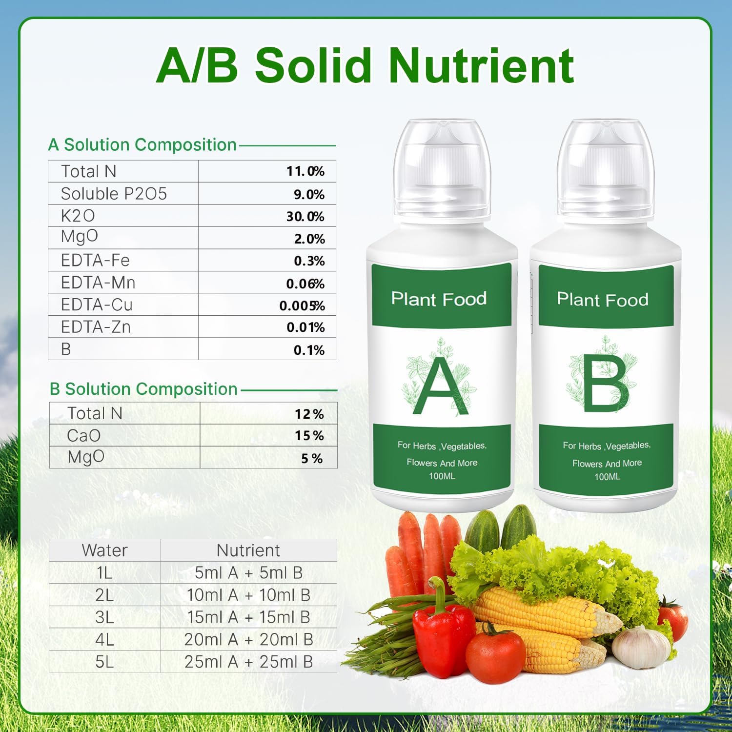 • 【Nutritious Trace Elements】Specially formulated hydroponics plant Nutrients for better growth and germination,consists of Nitrogen, Phosphorus, Potassium, Calcium, Magnesium, and more.
