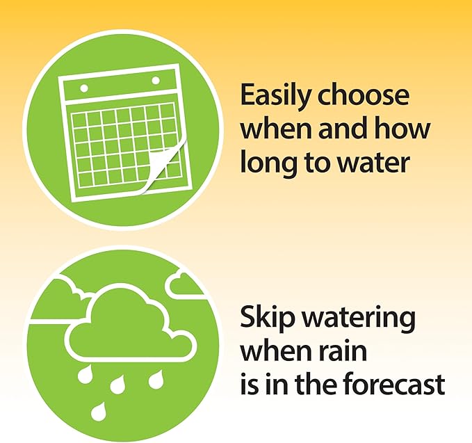 • Flexible watering options – water on specific days of the week or on a schedule of every few days. Each valve works like a separate timer with up to 12 customizable start times per day