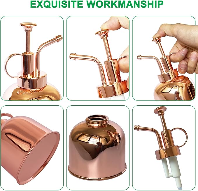 • [High quality material] The pot of metal plant sprayer is made of high quality stainless steel, the nozzle is made of metal zinc alloy, the spray pump is made of white plastic, the appearance is colored by electroplating, the product is leak-proof, rust-proof, scratch-proof, corrosion-proof and long-lasting without fading.