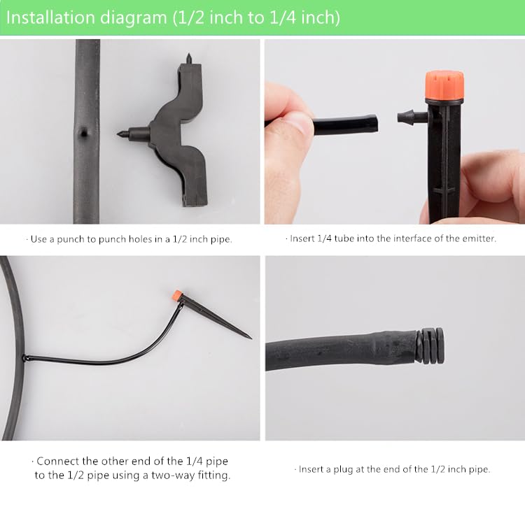 • Unique Design: 1/4" drip emitter ensures wide water passages, large deep and wide cross-section that improves clogging resistance.Ideally for Garden Pots,Trees and Shrubs.