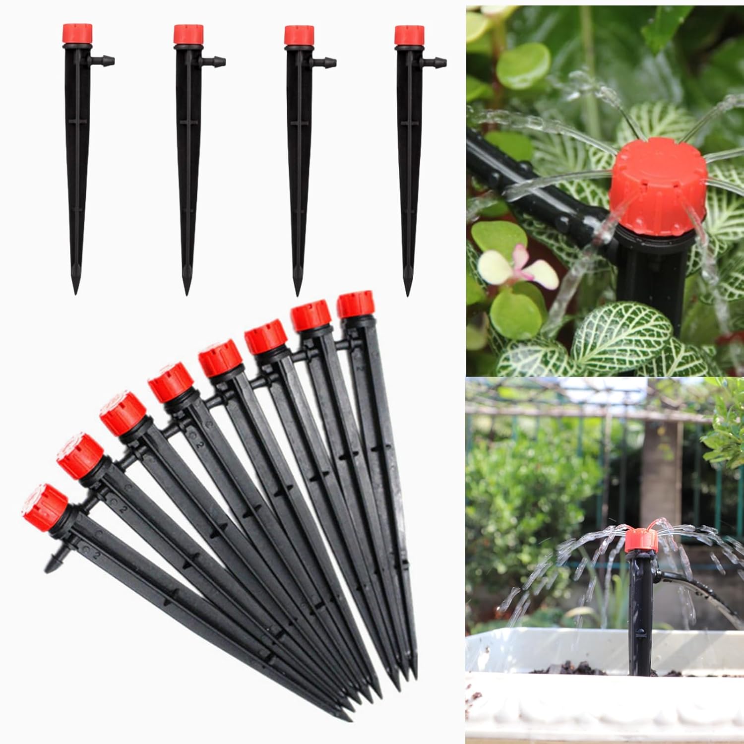 50pcs Drip Emitters for 1/4" Drip Irrigation Tubing, Adjustable 360 Degree Water Flow Drippers on 5" Arrow Stake, Garden Irrigation Drippers for (4-7mm) Watering System