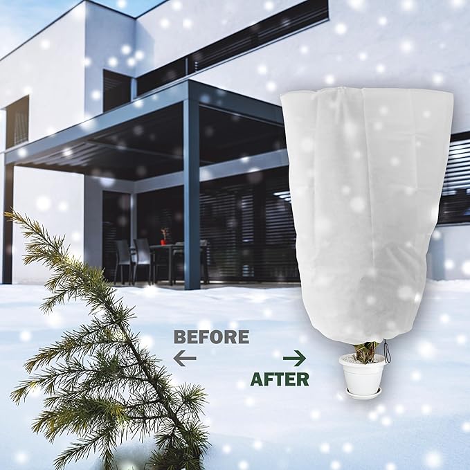 • Drawstring Design: The plant frost covers are sturdy and large enough to fit the plants easily, and there is a drawstring for tightening which makes it secure against the wind with easy to cinch the bottoms usage.