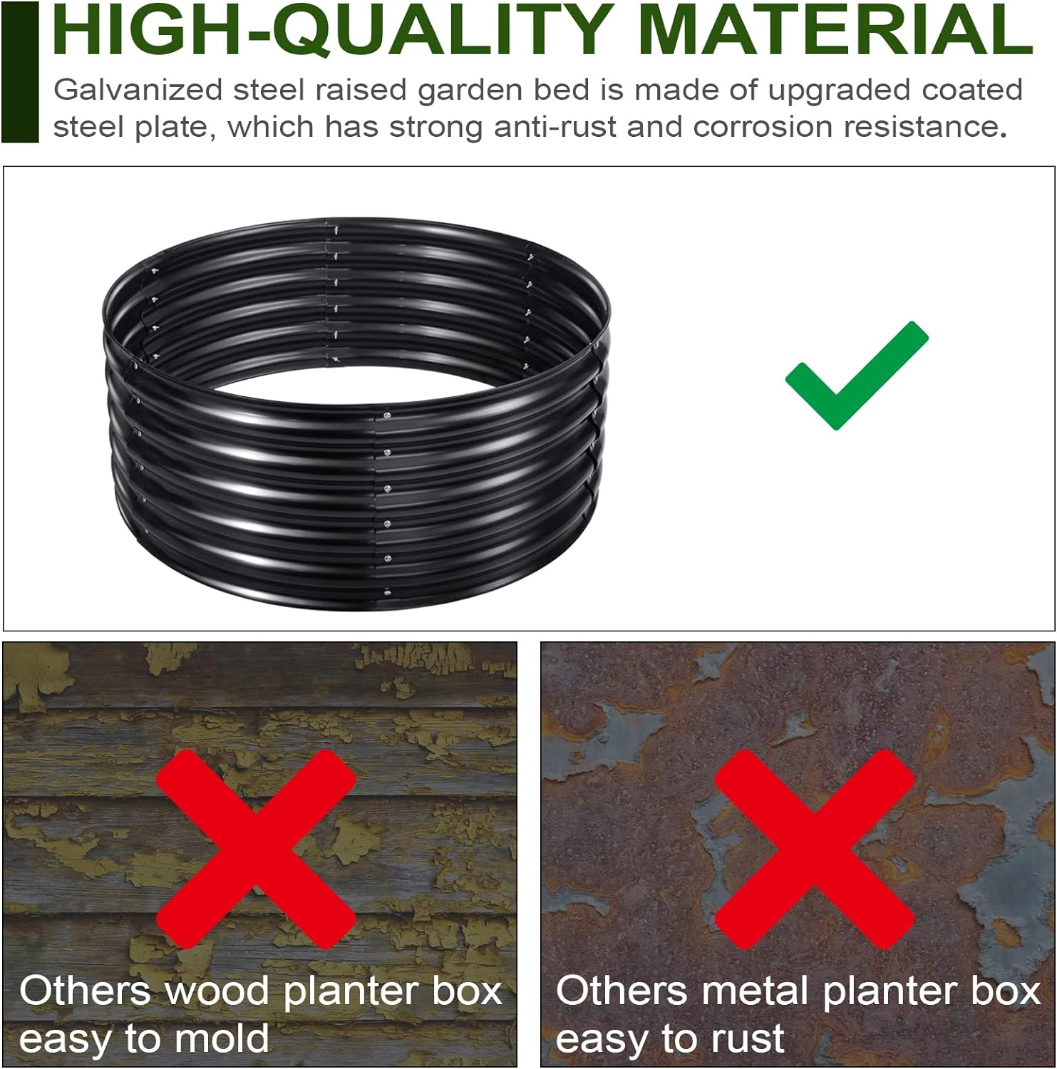 • Heavy-Duty Galvanized Steel: The 17" Tall, 42" Round Galvanized Raised Garden Bed Kit is made with three-in-one layering consists of a durable steel core, followed by a protective galvanized layer, and topped with a robust colored coating, enabling it to withstand prolonged exposure to elements like sunlight, rain, and snow.