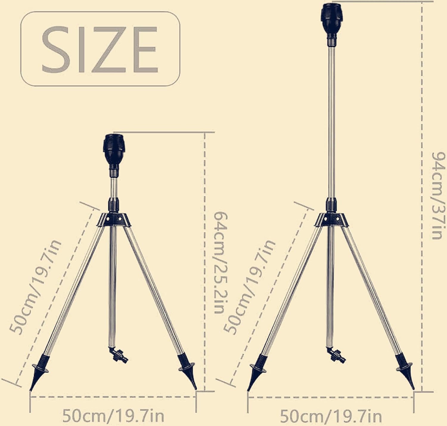 • ๐Ÿ’งโœ…ใ€Durable Materialใ€‘ The Irrigation Tools Are Made of High-Quality Stainless Steel and Plastic. Robust-Duty Tripod Construction Provides Durability and Stability. This Sturdy and Powerful Lawn Sprinkler System Will Serve You for Many Years.