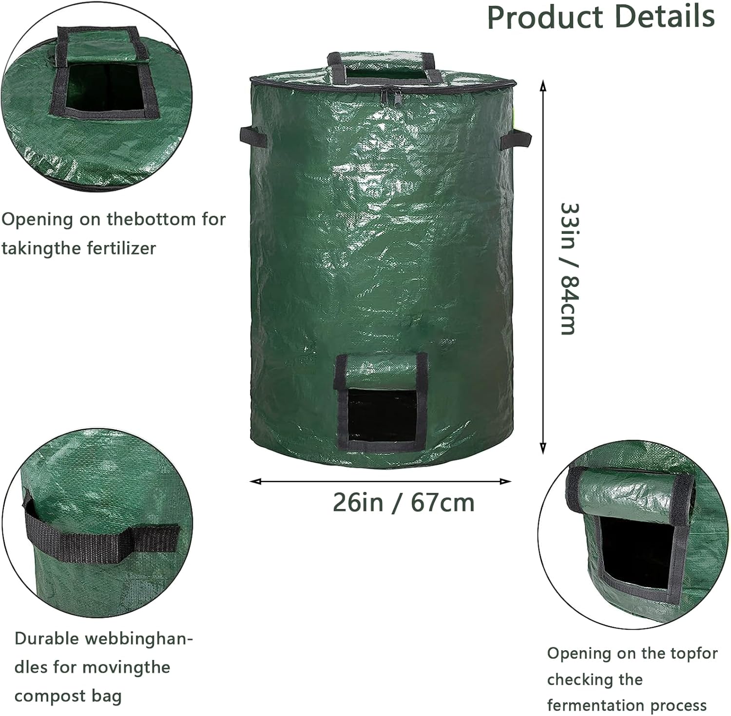 • [Large Capacity]: Large 80 gallon pile more fertilizer. Don't let your compost pile overflow – Our compost bags can hold up to 200 gallons of compost, grass clippings, leaves, and other yard waste to meet all your home and garden waste management needs.
