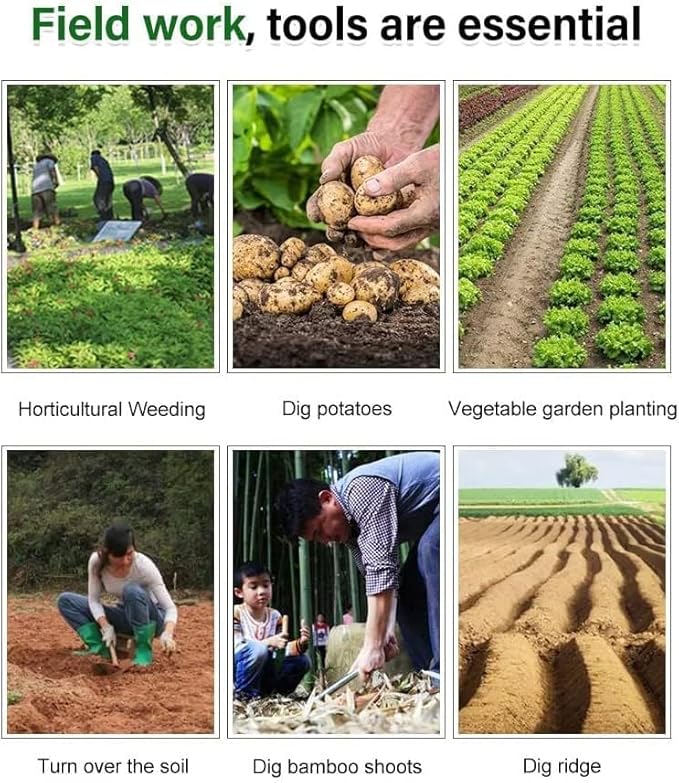 • Multi-Functional: Our gardening tools can be used for household weeding, ditching, loosening soil, seeding, plowing and more. It's perfect for everyday gardening tasks like growing vegetables and landscaping.