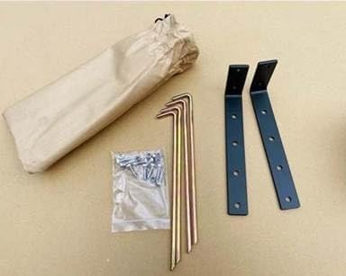 • Includes interior mesh pocket, velcro strap hose and shower head holder, metal mounting brackets, and metal anchor stakes