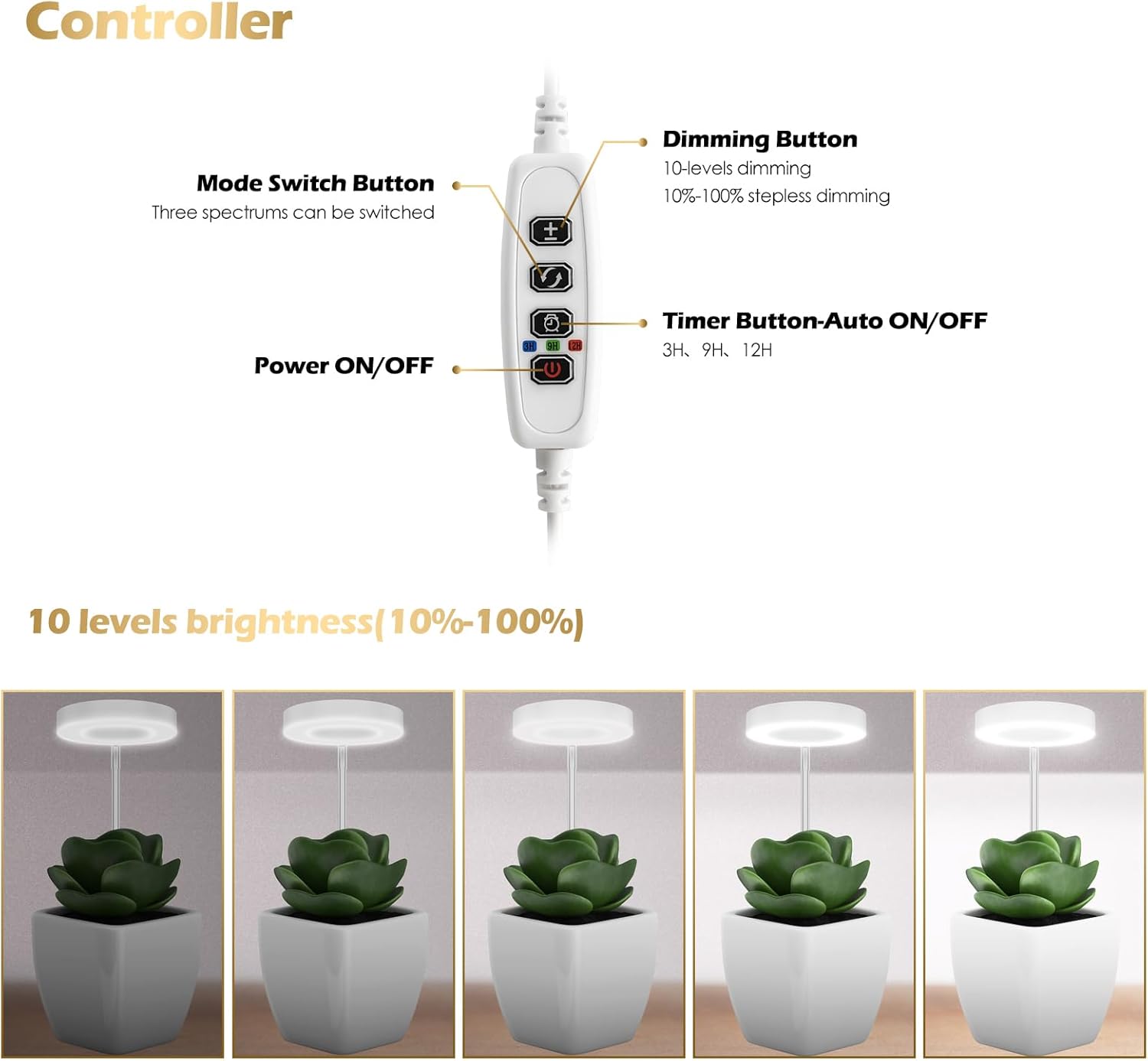 • 【Automated Timer & Dimming Options】: 10-level dimming (10%-100%) - You can choose the brightness that best suits plant growth, meeting the lighting needs of each plant at different stages. The ring growth light features a timer function for 3/9/12 hours. You can set the desired time, and it will automatically turn on/off at the same time every day. The automatic timer ensures that plants receive enough light for photosynthesis and have enough rest time. It takes care of your plants effectively.