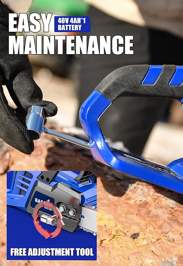 • Powerful 40V Brushless Motor — Delivers gas-like cutting power with zero emissions. Cuts logs and branches up to 14" thick effortlessly.