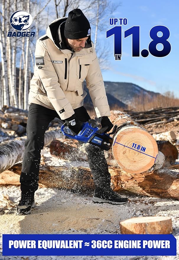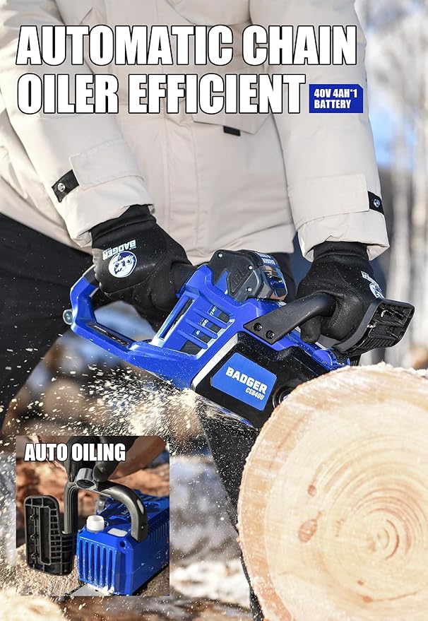 WILD BADGER POWER Electric Chainsaw Cordless 40V 16" Brushless, 4.0 Ah Battery and Charger, Smart Cut technology, Efficient cutting, Safe and Reliable, Great for Tree Felling, Storm Clean-Up, Pruning