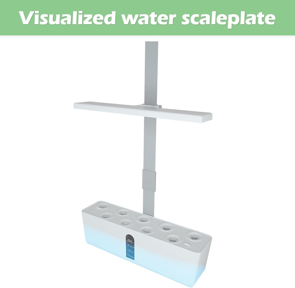 • Intelligent Water Deficiency Protection: When the water level is lower than the standard water level, the water pump will sound an alarm and the machine will start automatically after adding water. Every 10 minutes, the smart water pump will cycle on and off to provide sufficient oxygen to the plant roots.