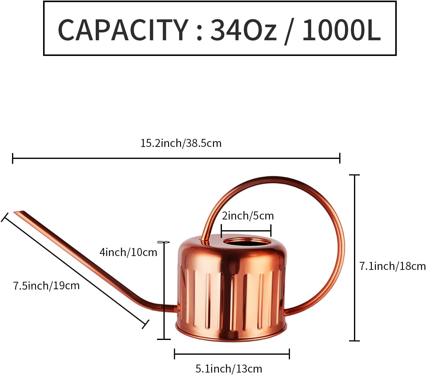 34oz/1L Stainless Steel Watering Can - Indoor/Outdoor Plant Watering Can with Long Spout, Rust-Proof for Succulents, Houseplants, Garden - Modern Minimalist Design (Copper Color)