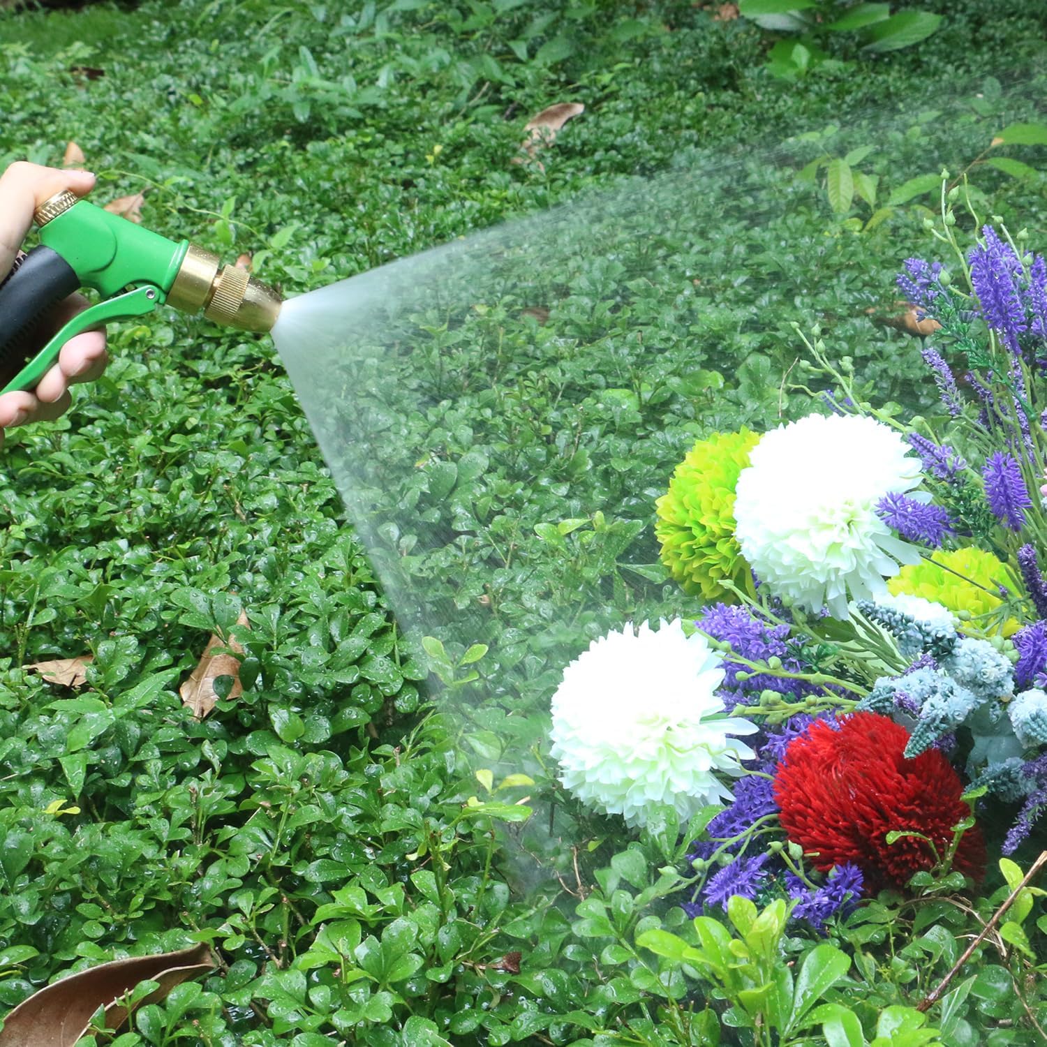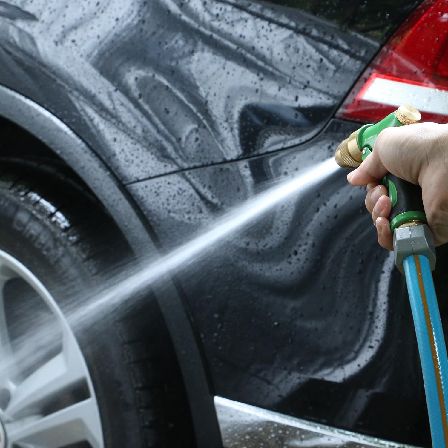 • ALL-MATAL CONSTRUCTION TO STAND THE TEST OF TIME - What stands out about this STYDDI garden hose spray nozzle is its sturdy and strong. Not only is its tip made out of solid brass, but its body and thread are all made of zinc alloy. The zinc alloy body is also with green powder coating to prevent rust and corrosion.