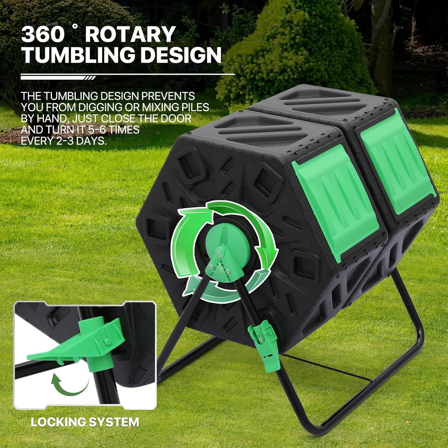 • Keep the Nutrients Coming - Achieve your gardening goals with a steady supply of ready-to-use compost! This 2-chamber compost tumbler allows you to add compost ingredients to one side while waiting for the other side to cure. And with internal mixing bars that speed up the decomposition process, you can expect rich, fertile compost in just 4-6 weeks!