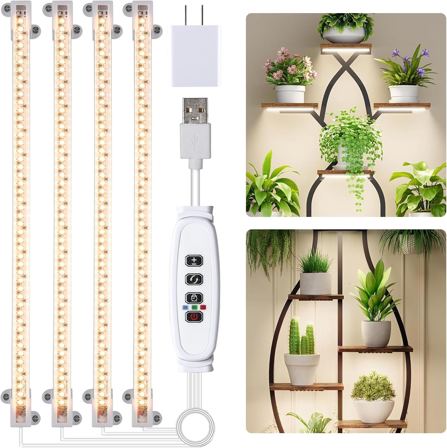 LED Grow Light Strips for Indoor Plants Full Spectrum 3500K, 192 LEDs Plant Light Bar with 3/9/12H Timer, 10 Dimmable Levels for Seedling Succulent, 13 Inches, 4 Head