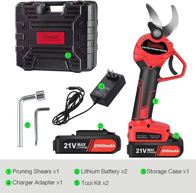 Electric Pruning Shears,Professional Cordless Tree Branch Pruner with 2PCS Lithium Battery and Matching Tools,30mm (1.2″) Cutting Diameter