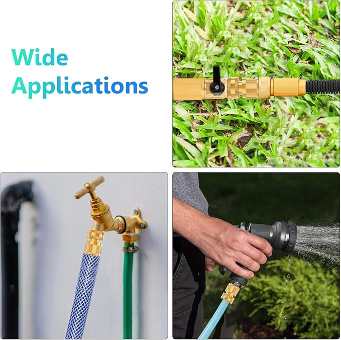 • Premium Material: The quick connect garden hose fitting are made of brass which is strong, durable and high heat resistance. Fine enough for indoor and outdoor long-term use.