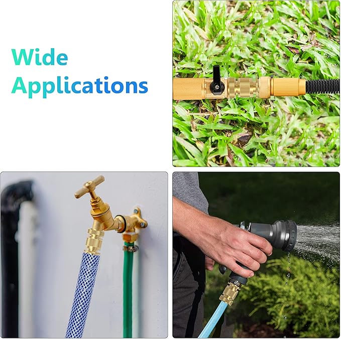 • Premium Material: The quick connect garden hose fitting are made of brass which is strong, durable and high heat resistance. Fine enough for indoor and outdoor long-term use.