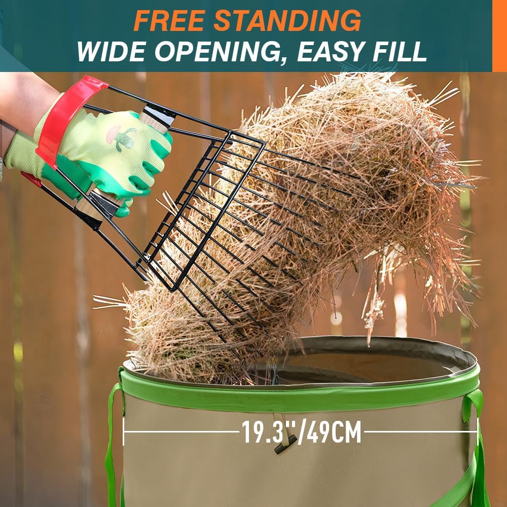 • FREE STANDING, WIDE OPEN, EASY FILL -- are you still struggle with the typical paper reusable garden bag which are always tip and spill or get wet? You should try this one. Once you remove the interlocking string, the internal spring of this collapsible garden bag pops up and stand up on it's own. It keeps upright with a wide mouth(about 19.3’’ in dia.), waiting for your filling eagerly.