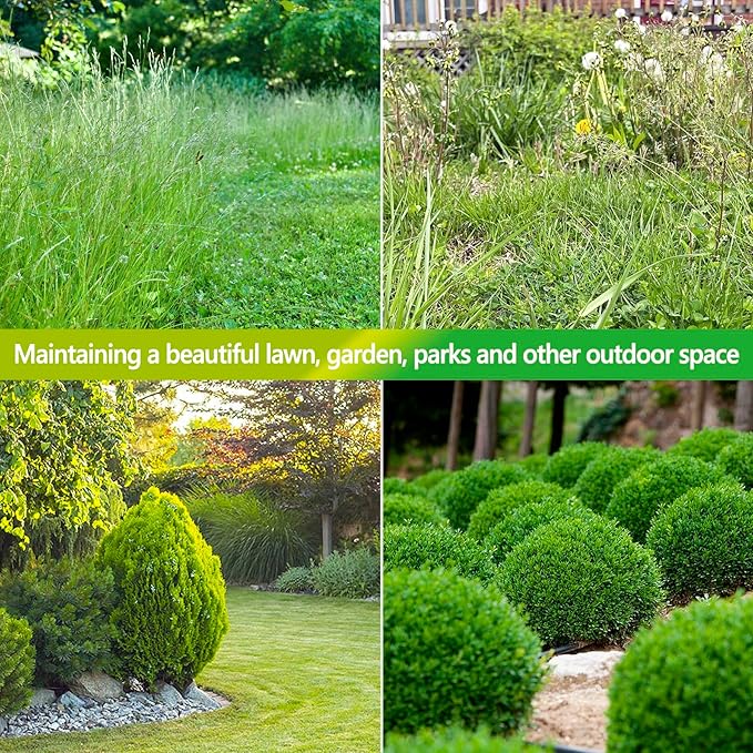 • High Efficiency: Equipped with 2200-RPM speed powerful pure copper motor, making your mowing tasks more stronger and faster. Double saws work at the same time to improve the trimming efficiency and dual action blade structure reduces jams and snags during cutting. (Warm note: clean it after using and kept dry during storage to prevent rust).