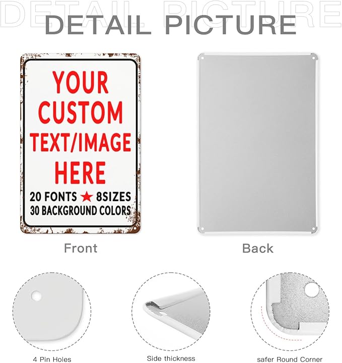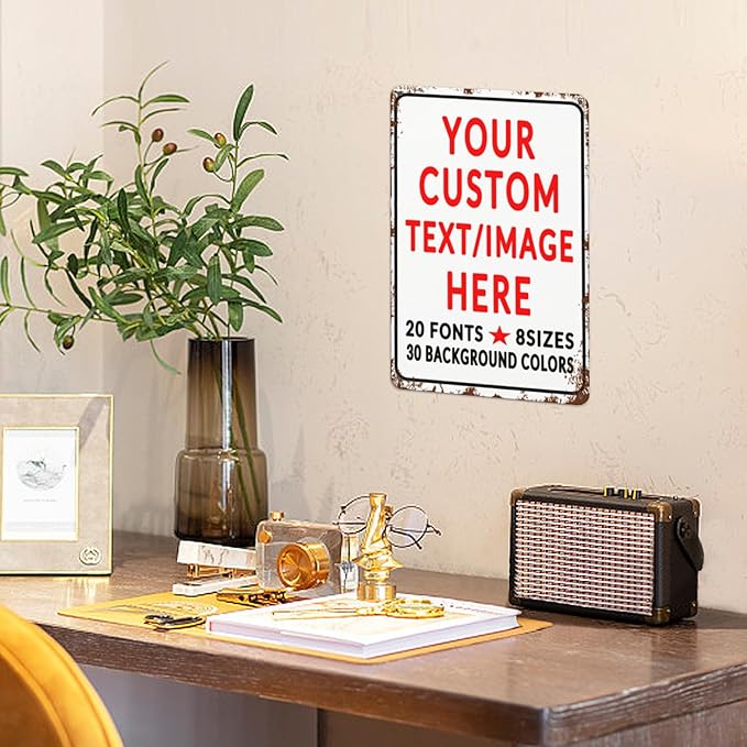 • CUSTOM YOUR OWN PERSONALIZED METAL SIGNS - By Upload Your Image Or Text Or Logo! Please Start By Clicking "Customize Now" Button And Click "Browse" Button To Upload Picture,Also Your Can Select The Color Background, Type Your Text You Can Choose The Typeface And Text Color.