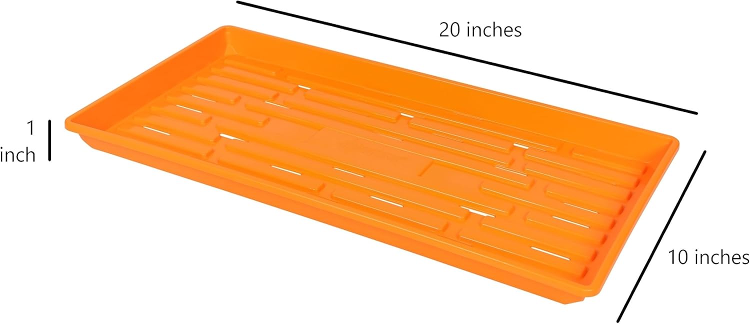 SUNPACK 10" x 20" Heavy Duty Shallow Plastic Seed Starting Tray, Orange, 1" - Lined with Drainage Holes for Excess Water and Aeration, Ideal for Greenhouses or Indoor Gardening