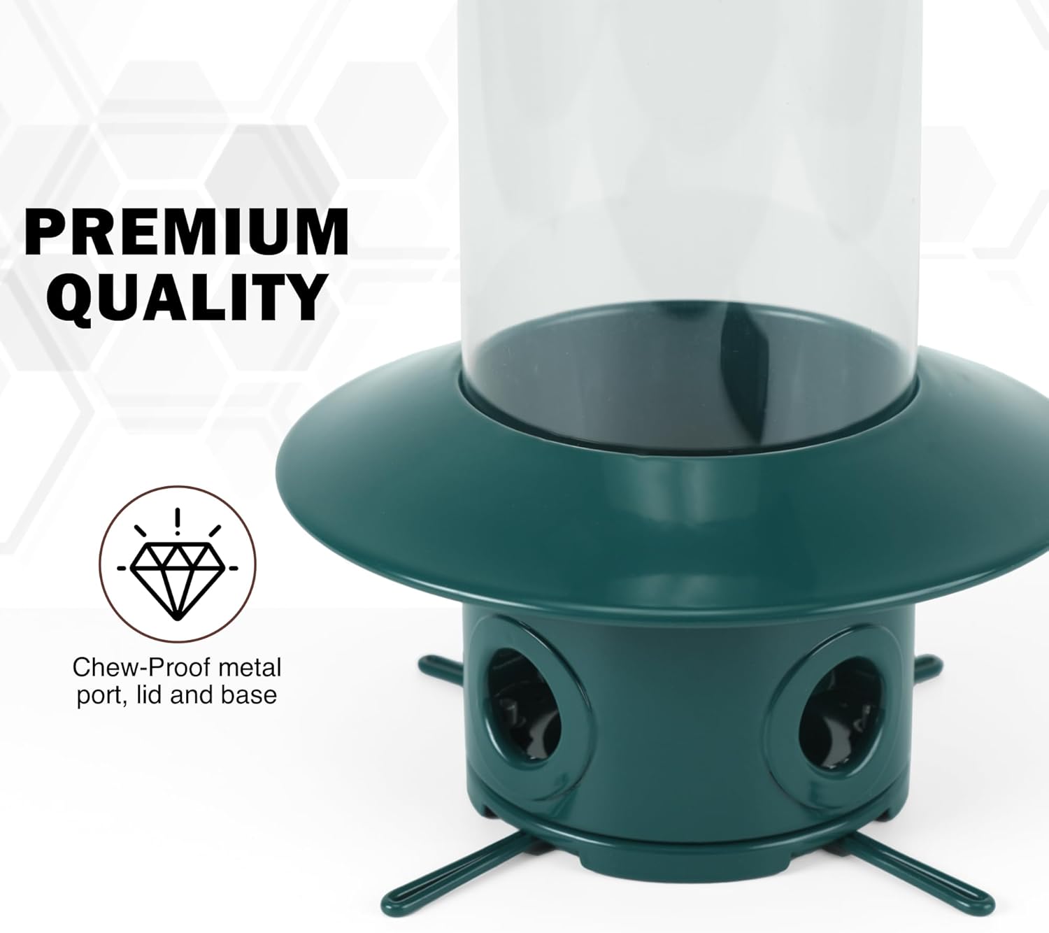 • Built to Last - Our bird feeder is like a fortress, thanks to its chew-proof metal lid and base. Come with 4 Chrew-Proof metal feeding ports and high Quality Transparent PVC Tube. It'll weather the seasons, ensuring it stays in your garden for years.
