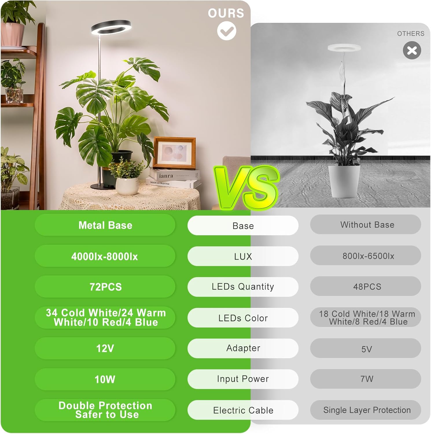 • Upgrade Grow Light with Stable Base: Our grow lamp features a sturdy metal base with non-slip pads, ensuring stability and ease of use. Its compact design makes it ideal for use on office desks, tabletops, and plant shelves, without taking up valuable space. This versatile desk plant lamp is perfect for various indoor plants, including succulents, herbs, orchids, and tomatoes