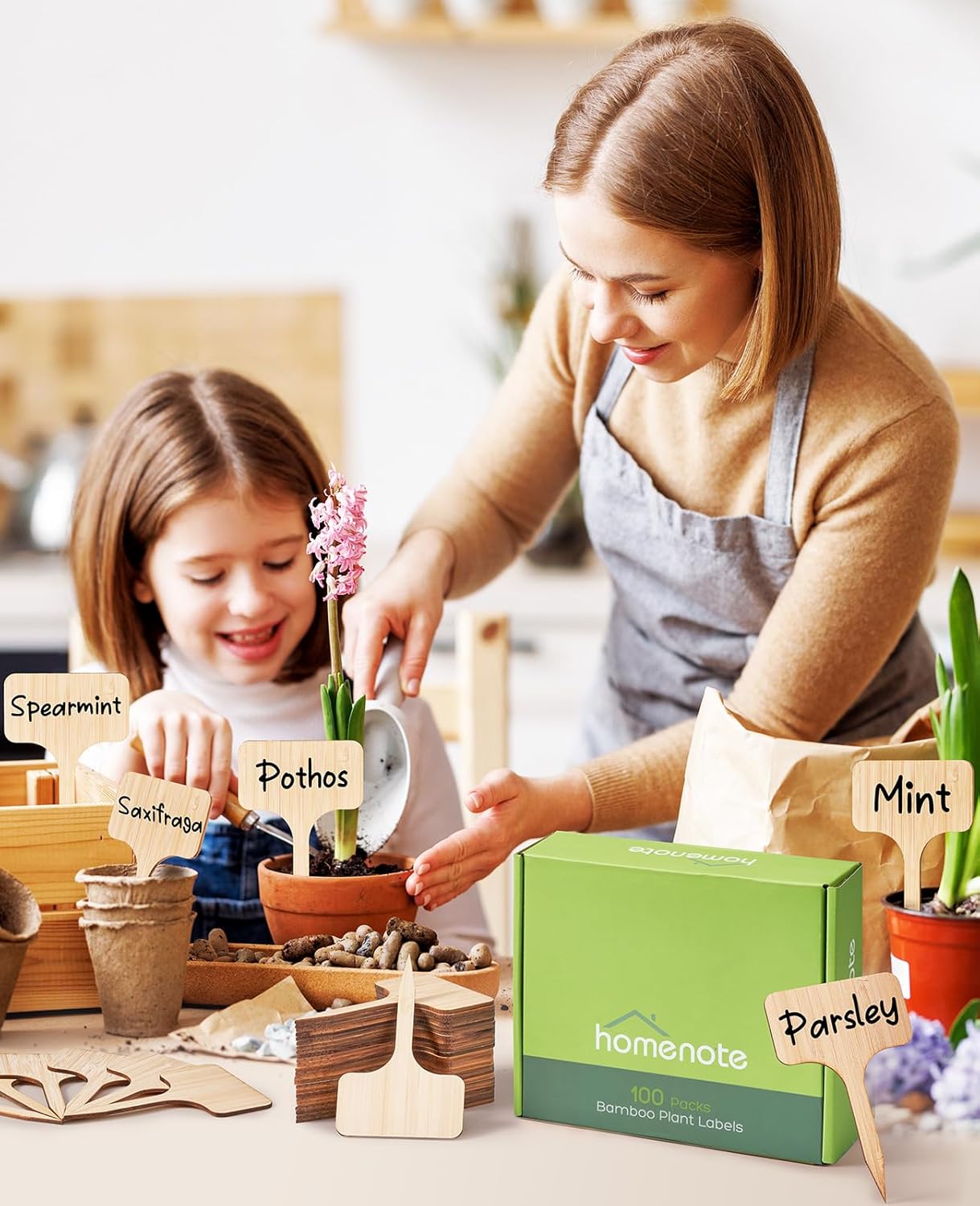 Homenote Bamboo Plant Labels 100Pcs Plant Tags for Seedling T-Type Tags for Plants Outdoor Garden Markers Vegetable Seedling(2.36 * 4โ€œ)