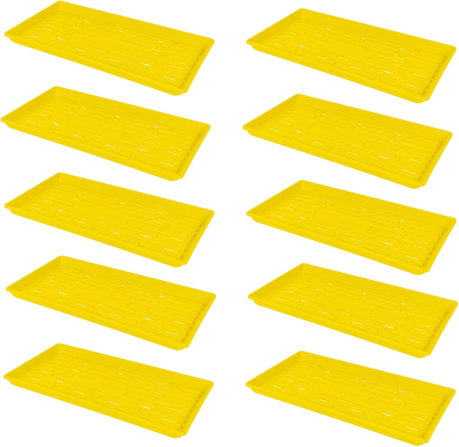 SUNPACK 10" x 20" Heavy Duty Shallow Plastic Seed Starting Tray, Yellow, 1" (Pack of 10) - Lined with Drainage Holes for Excess Water and Aeration, Ideal for Greenhouses or Indoor Gardening