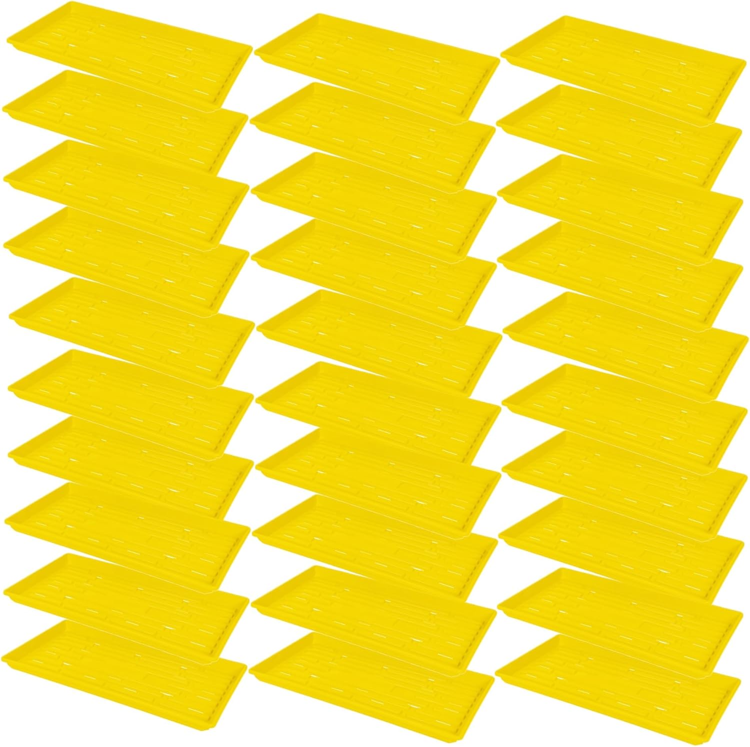 SUNPACK 10" x 20" Heavy Duty Shallow Plastic Seed Starting Tray, Yellow, 1" (Pack of 30) - Lined with Drainage Holes for Excess Water and Aeration, Ideal for Greenhouses or Indoor Gardening