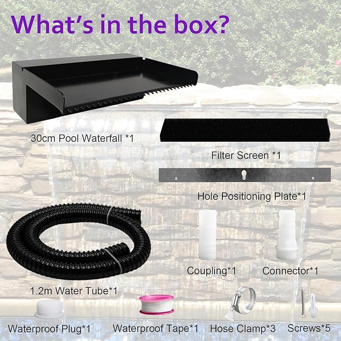 • ⏩Easy to Install Waterfall Kit⏪ Pamopamo waterfall kit is user-friendly and easy to set up. It integrates seamlessly into your pool or pond, adding a beautiful water feature without the need for complex installations.
