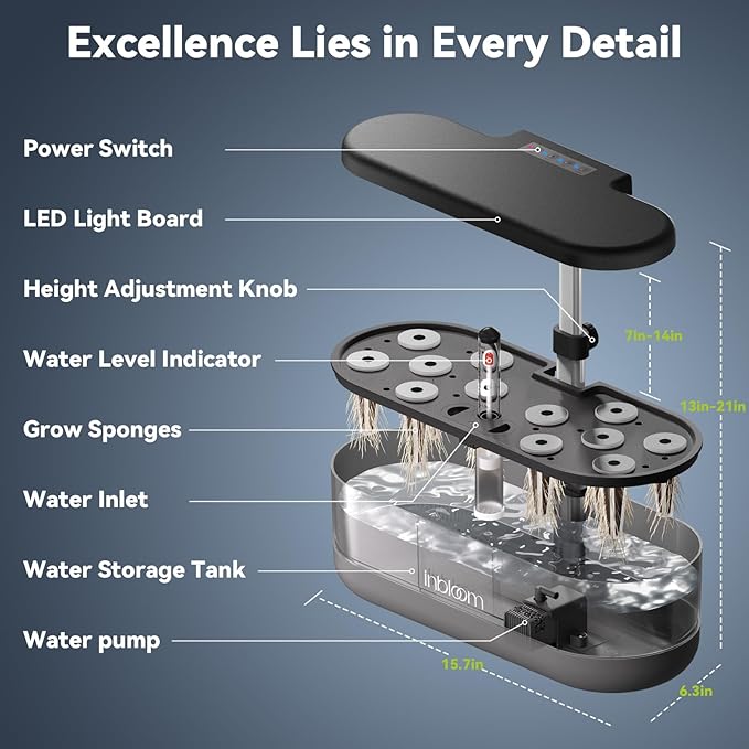 • [Adjustable Lamp Post and Water Level Indicator]: Hydroponics lift-able lamp post can reach heights of 7-12 inches, ensuring 100% light exposure for plants at various growth stages. Suitable for different flowers and plants heights. The water level indicator keeps you informed of remaining water, so you never forget to hydrate your garden.