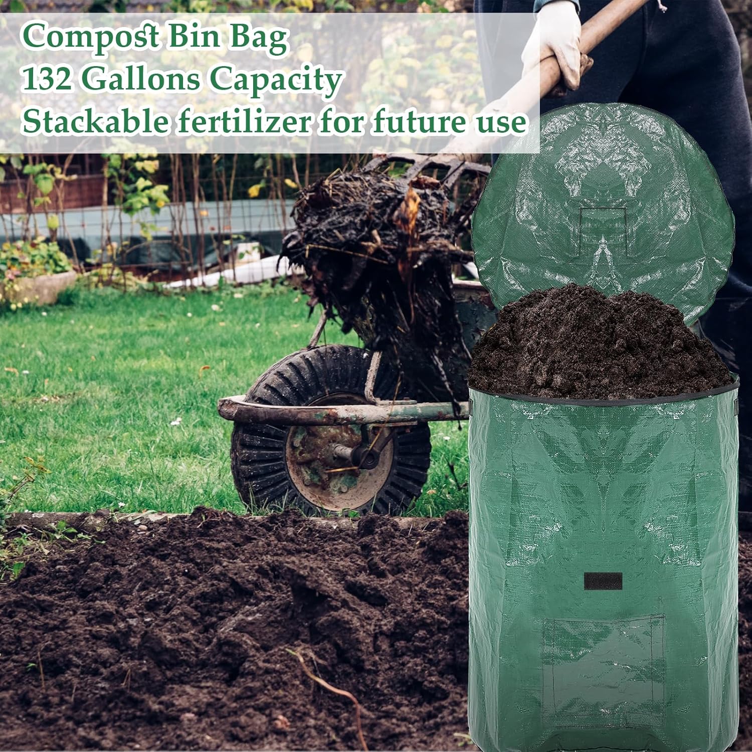 • Easy to Open and Move: lawn leaf bags for outdoor are designed with openings at the top and bottom, easy and convenient for you to open and check the fermentation status of compost, or take out organic fertilizers, and yard waste bag comes with reinforced handles to make the bag easy to carry move