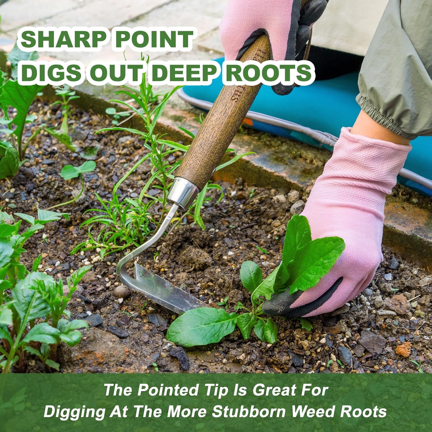 • 【Loosen The Soil Effortlessly】The japanese weeder with a sharp point tip makes it easy to dig and is used for breaking up the soil, mixing in compost to small areas, helping loosen the soil around weeds, and even digging when the dirt is compacted mess.