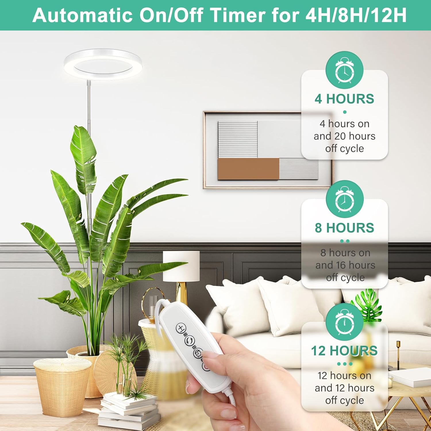 • Auto On/Off Timer and 10 Dimming Levels: Take control of your plants' lighting needs with easy-to-set timed dimming functions. Select from 4, 8, or 12-hour cycles, and the light will automatically turn on/off at your pre-set times. With 10 adjustable brightness levels(10% to a powerful 100%), you have precise control over the lighting intensity.