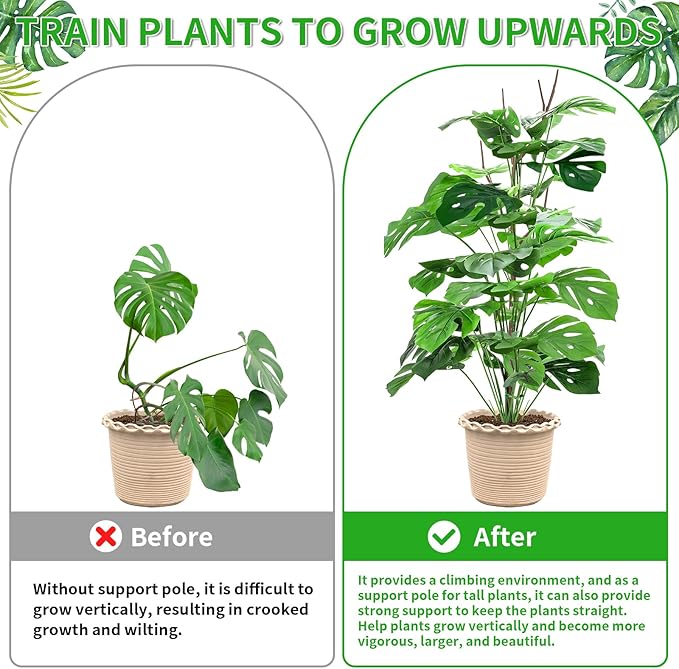• 【Suitable for Most Indoor and Outdoor Plants】Plant stake is the ideal support for various climbing plants. It is suitable for climbing plants, vines, shrubs, and flower arrangements. Such as Pothos, Money, Monstera, Philodendron, Begonia, Hoya, Ivy, Orchid, Pull Clematis, Morning Glory, Lily, Peony, etc. These plant pole supports help creeping plants with aerial roots grow vertically toward the light, mimicking their natural environment, and making them thrive under natural light.